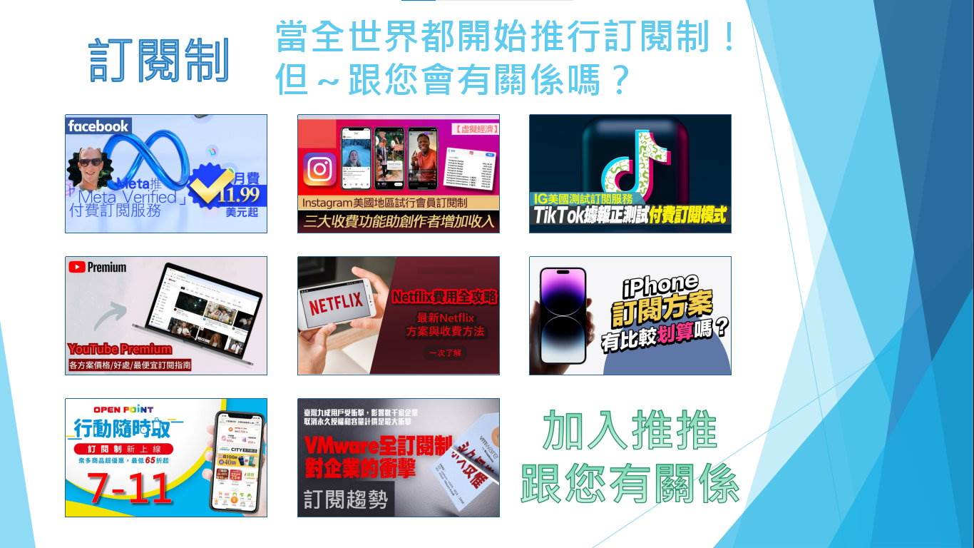 推推是一套整合市面上所有商務系統🖥️,並採用訂閱制模式🗓️,讓所有會員🙆,可以用最少的金額💸,使用CP值最高最多元的系統📱。