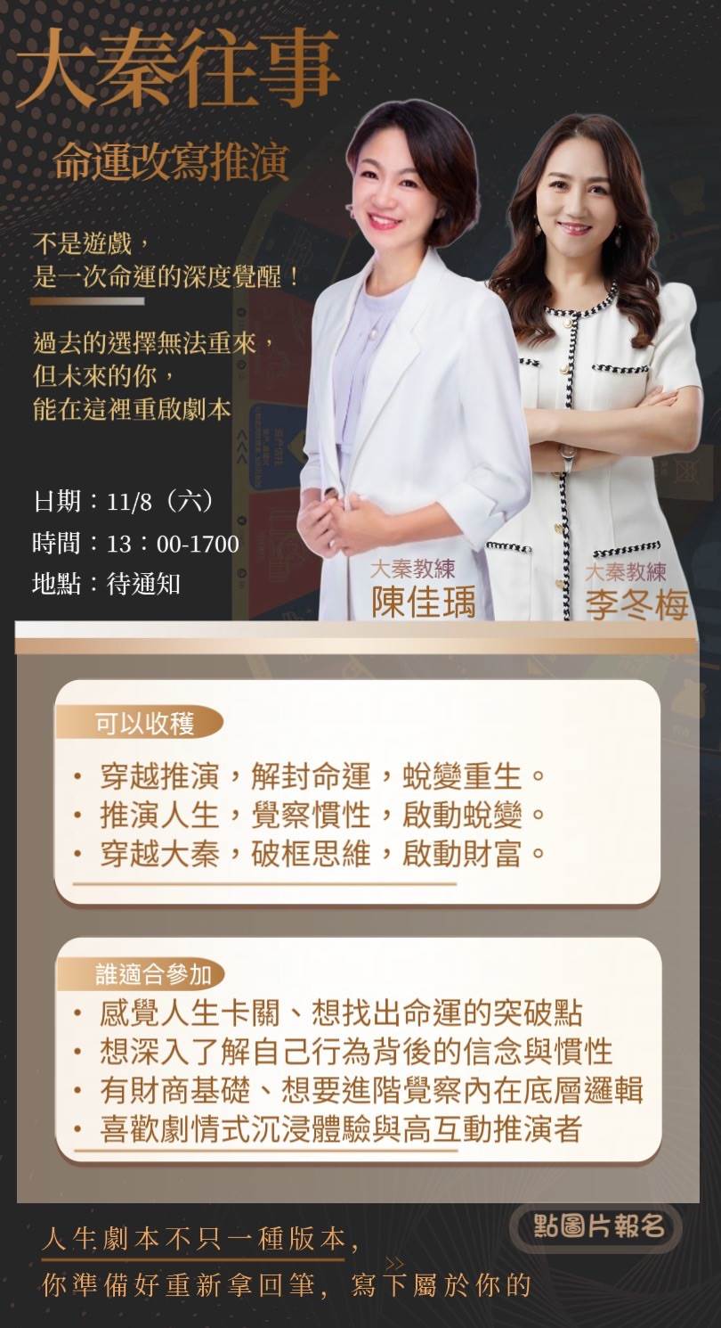 👣 無論你是想要提升團隊效能、人生十字路口迷惘、想轉職卻不知從何開始,還是正在尋求內在覺察與人際關係的突破,我都邀請你和我一起,透過有趣的遊戲、真實的對話與實用的方法,重新連結那個最真實、有力量的你。